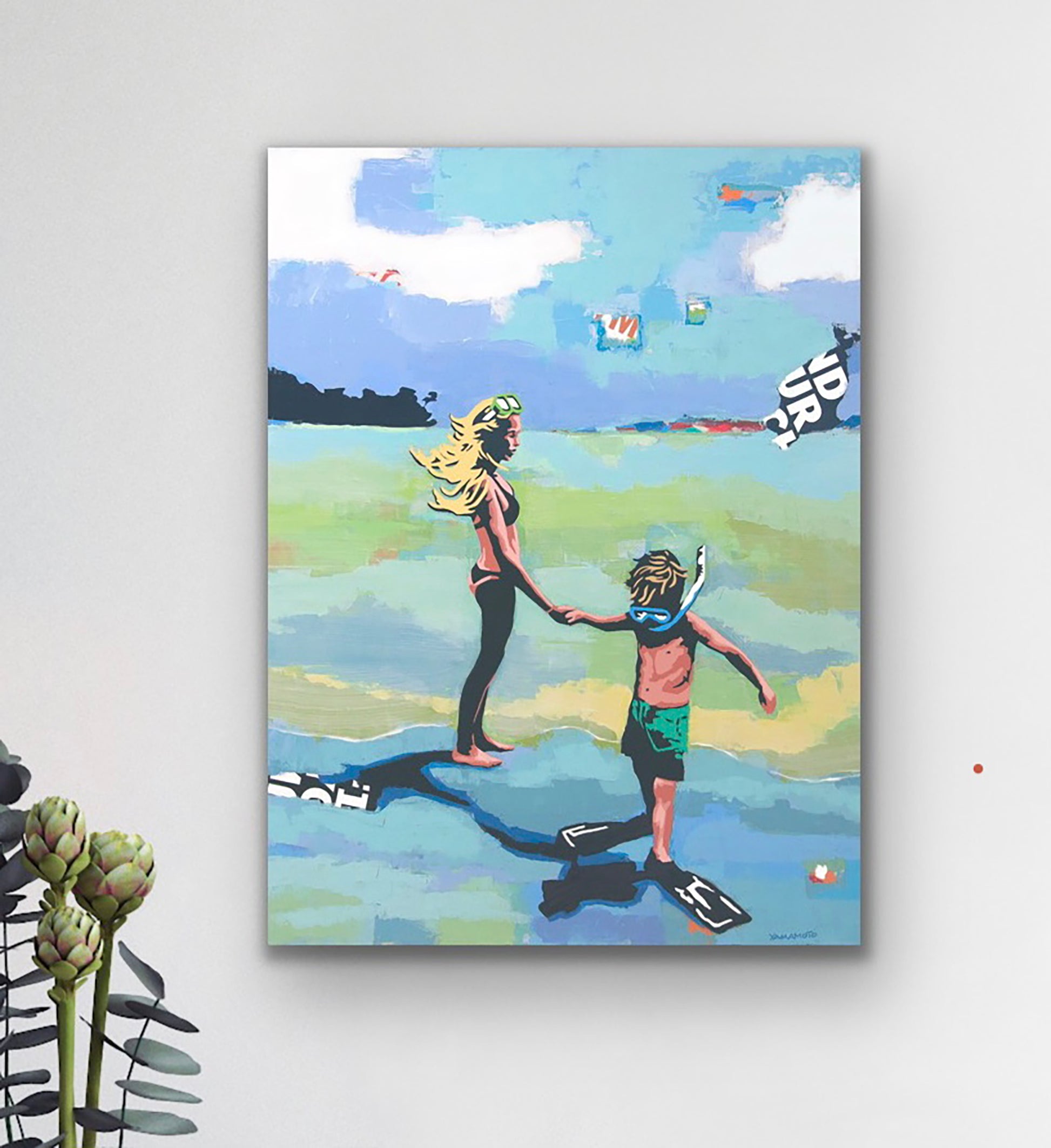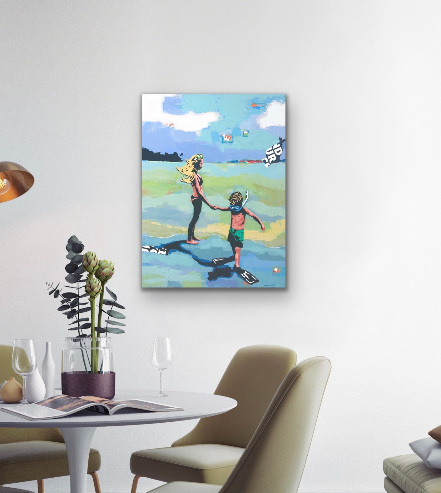 Sanoa and her little brother shows us the absolute preciousness of sibling relationships. Original painted with acrylic, spray paint, collage on wood.