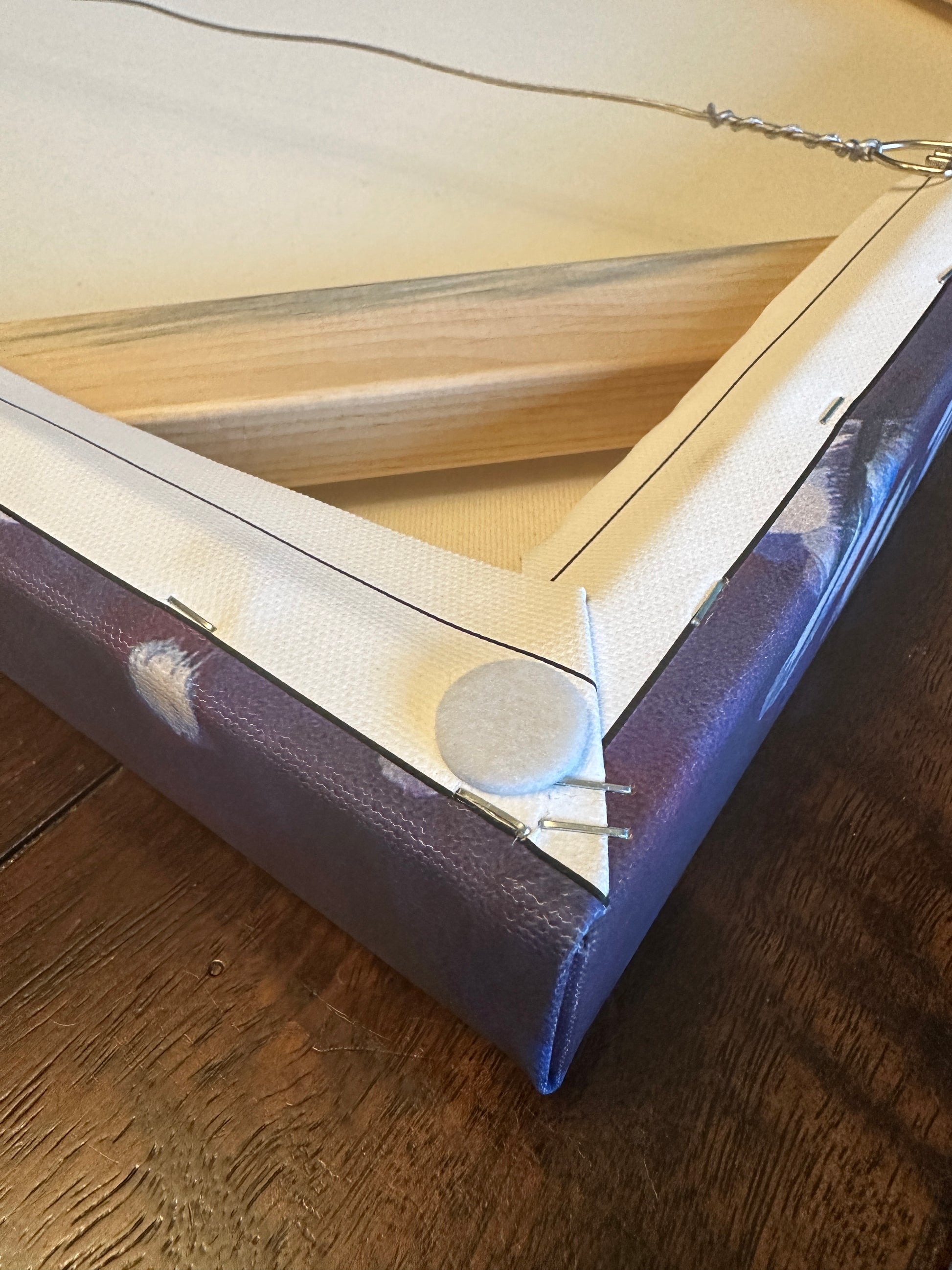 - Wire hanging system with and all four corners of artwork with felt pads for wall protection.